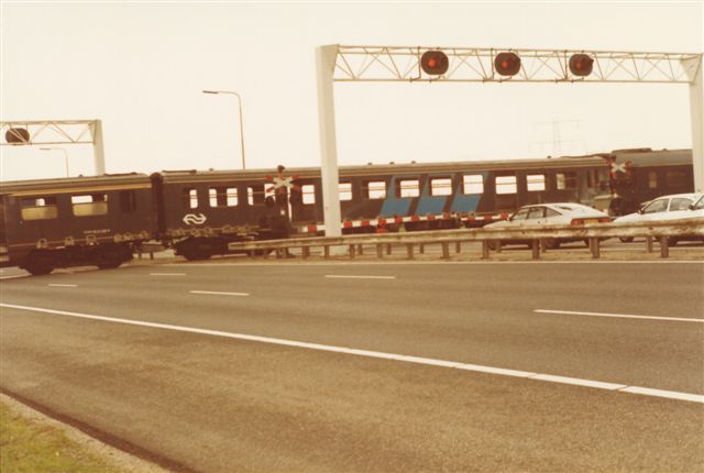 De agent staat rechts naast de spoorbomen, 6 mei 1986fotograaf: Kees Mooij |
