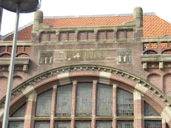 ![]() Volgens velen is dit enige geheel in Art Nouveau stijl ontworpen station van D.A.N. Margadant uit 1906 het mooiste station van Nederland. Het is kenmerkend voor de grote stations van de Hollandsche IJzeren Spoorweg Maatschappij. Station Haarlem (Hlm). |