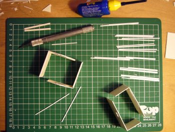 Het laddertje komt uit de rommeldoos, de pilaren zijn samengesteld met behulp van Evergreen hoekprofielen. |