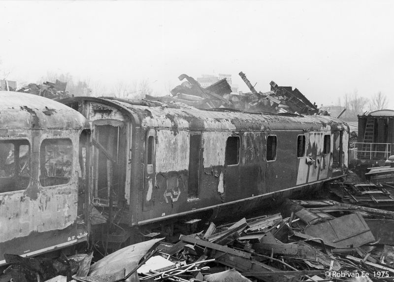 ![]() Ook de ABk 187 onderging hetzelfde lot als mD 191 bij sloperij Koek te Mijdrecht op 19 april 1975. fotograaf: Rob van Ee |